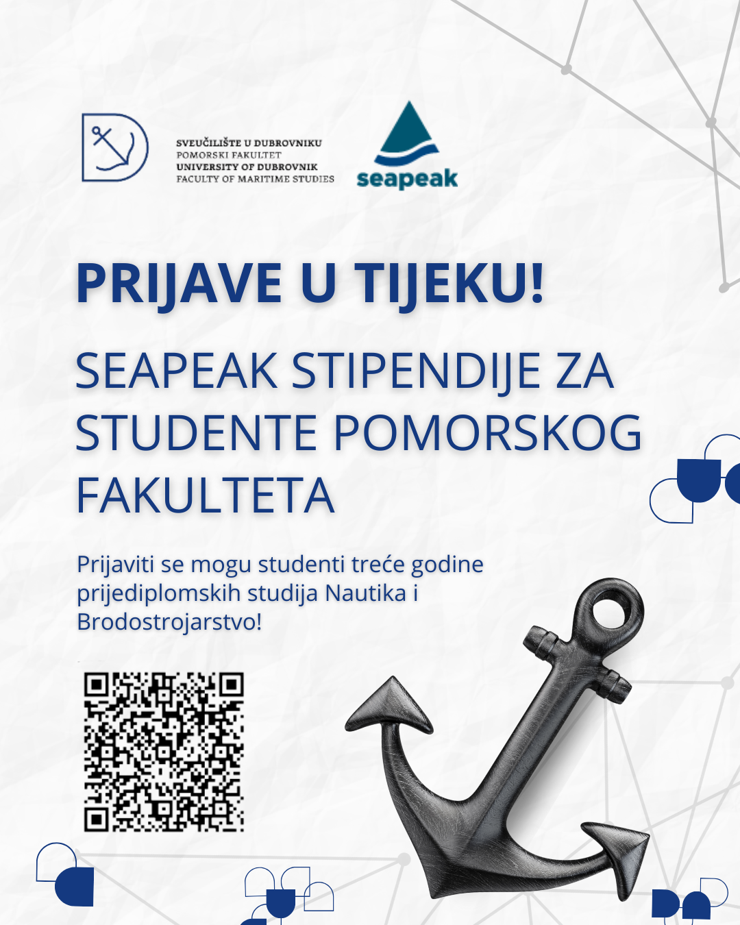 The Faculty of Maritime Studies of the University of Dubrovnik, as part of its excellent cooperation with the international shipping company SEAPEAK, announces a call for applications for scholarships intended for third-year undergraduate students of Nautical Studies and Marine Engineering.
