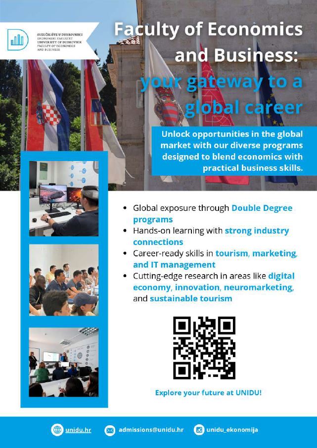 The Bachelor’s program in Business Economics with a specialization in IT Management prepares students for IT management roles in sectors like tourism, banking, commerce, and public administration. The curriculum blends core business knowledge with modern IT and management principles, focusing on integrating ICT with business strategies to create a competitive advantage. Students gain expertise in using data and advanced information systems to support decision-making, ensuring they are ready for key roles in tech-driven industries. With practical experience and a focus on the digital economy, graduates are well-equipped for success in both the private and public sectors.