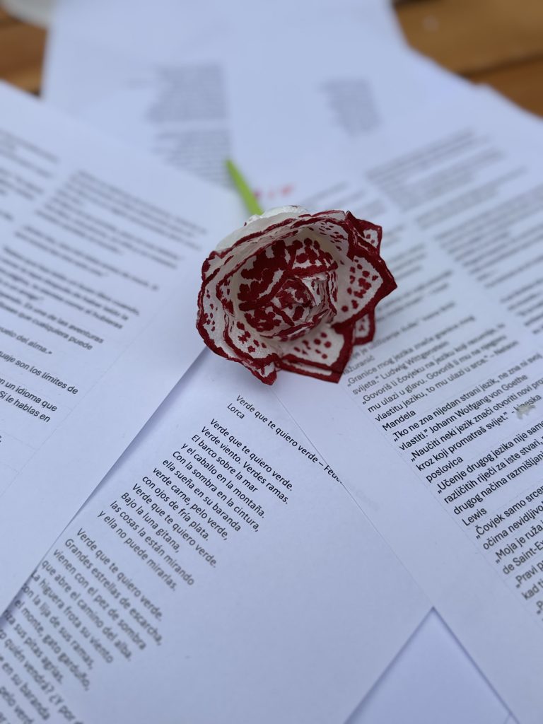 Trećega dana ciklusa održana je terenska nastava u sklopu radionice „Poezija u prirodi i kreativno izražavanje“ na otoku Lokrumu. Učenici su pripremili kratka izlaganja o životu i stvaralaštvu Federica Garcíe Lorce, a profesorica povijesti objasnila povijesni kontekst njegova života i djela. Pod vodstvom profesorice hrvatskog jezika učenici su čitali Lorcine pjesme na hrvatskom i španjolskom jeziku te ih analizirali i interpretirali. Program je završio zajedničkim pjevanjem pjesme La Tarara, izradom papirnatih ruža i kreiranjem poruka s citatima o knjigama, čitanju, učenju stranih jezika, prijateljstvu i prirodi.