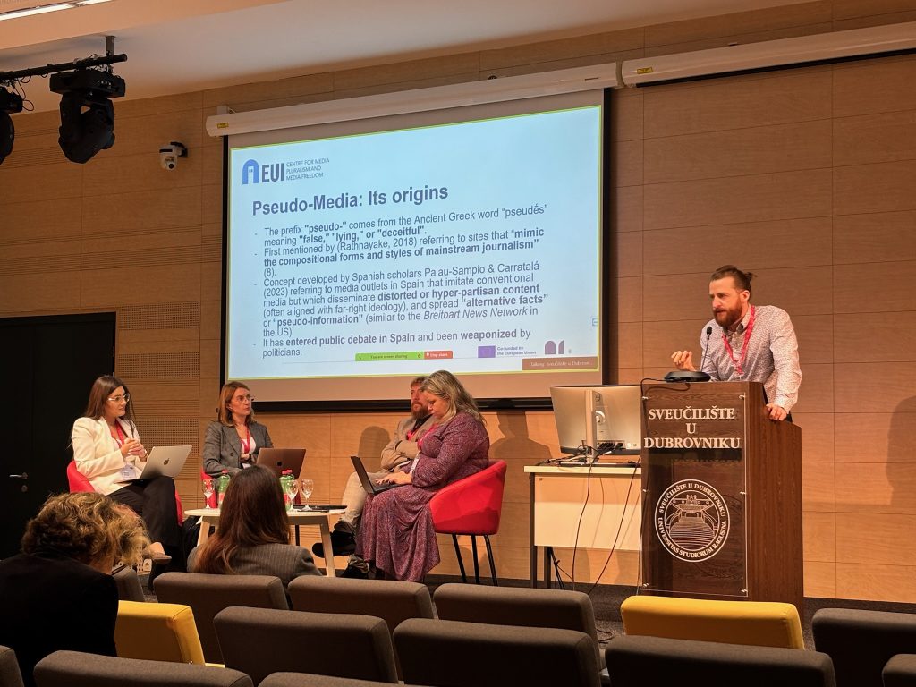 Nakon pozdravnih govora organizatora, konferencija je započela paralelnim sesijama o utjecaju AI-ja na širenje dezinformacija i o kognitivnim, društvenim i komunikacijskim transformacijama u eri AI-ja. Znanstvenici iz Italije, Bugarske, Poljske, BiH, Srbije, Španjolske i Hrvatske otvorili su brojne teme, poput nastanka pseudo-medija, utjecaj AI-ja na povijesne narative te etiketiranje i točnost AI generiranog sadržaja. Naglasak je stavljen i na ulogu publike u širenju dezinformacija i problematiku pristranosti algoritama.