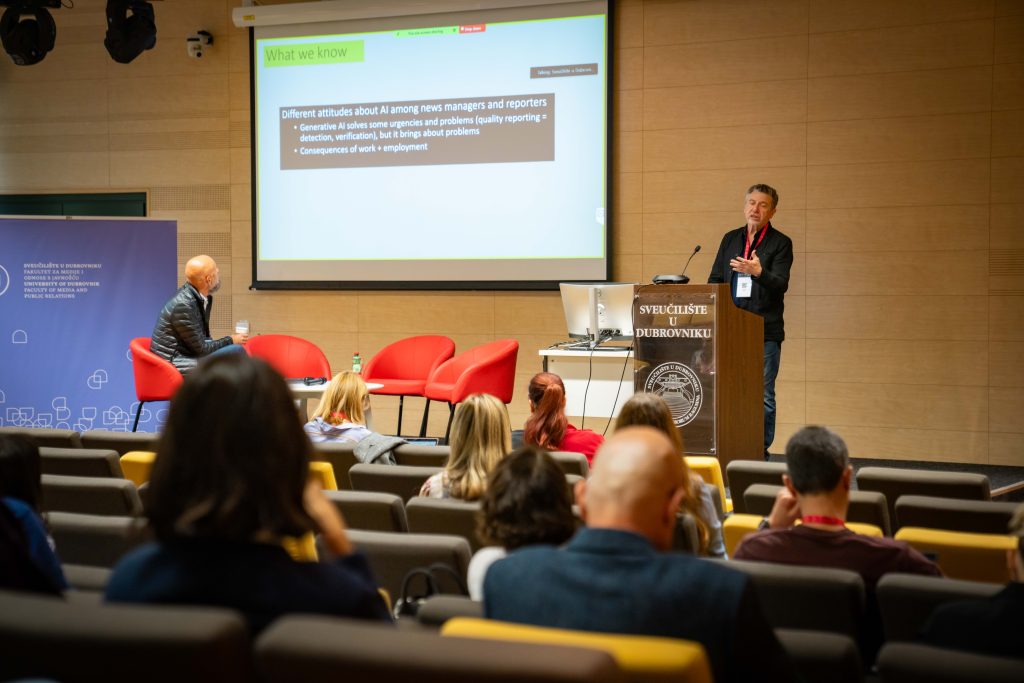 Profesor Waisbord istaknuo je da AI produbljuje postojeće nejednakosti u medijskoj industriji, jer prednosti ostvaruju velike redakcije s tehnološkim resursima. Iako AI može povećati učinkovitost, on ne može zamijeniti ljudsku kreativnost, kritičko mišljenje i kontekstualno razumijevanje. S druge strane, profesor Petit upozorio je da tehnološki napredak u medijima donosi i društvene troškove poput dezinformacija i gubitka privatnosti. Ključno pitanje izlaganja bilo je i centralna tema same konferencije – tko snosi trošak (i kakav) inovacija u današnjoj demokraciji?