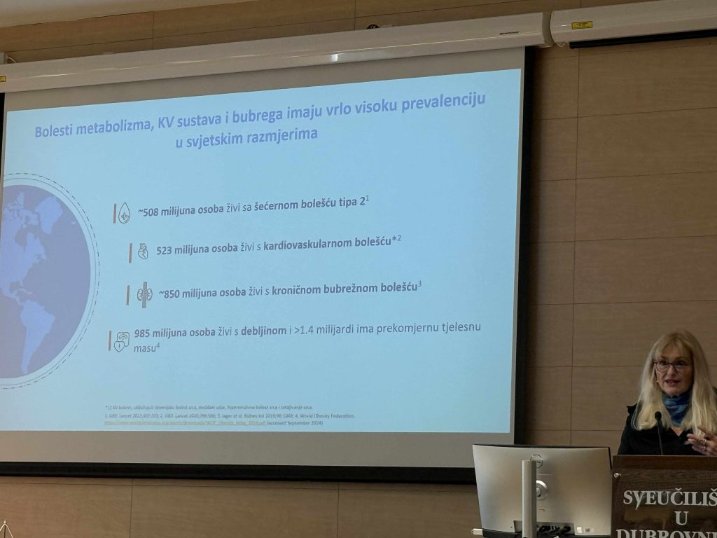Doc. dr. sc. Sanda Tešanović predstavila je temu „NEKAD I DANAS: Od nemoći do potpune remisije šećerne bolesti tip 2“, naglasivši važnost ranog prepoznavanja simptoma te suvremenih pristupa liječenju koji prate potrebe pojedinca kroz sve životne faze, što je ujedno i središnja poruka ovogodišnjeg Svjetskog dana dijabetesa.