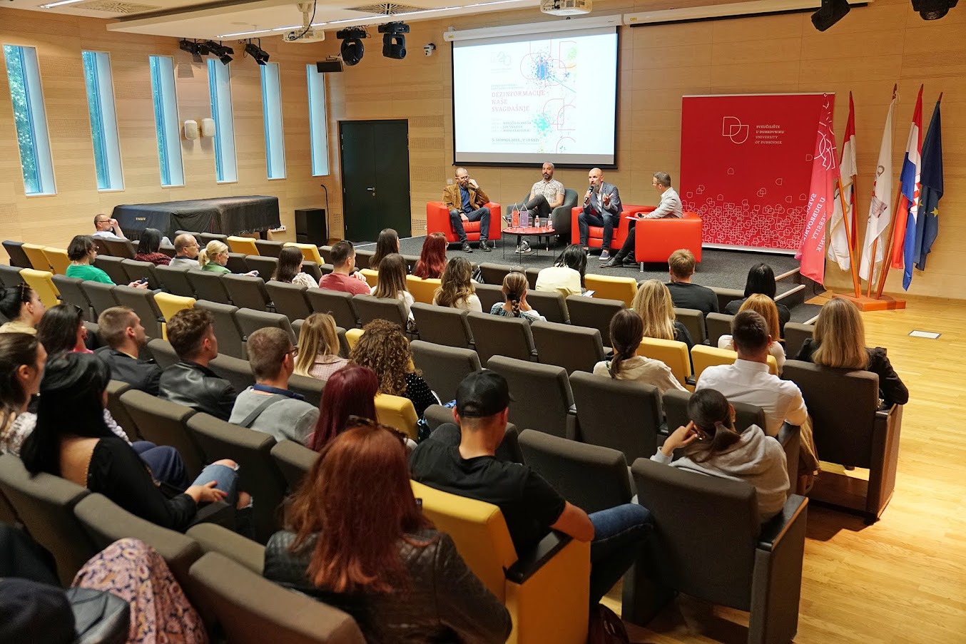 Jedanaesta znanstvena tribina Sveučilišta u Dubrovniku za javnost naslovljena „Dezinformacije naše svagdašnje“ održana je u Sveučilišnom kampusu. Sudjelovali su prof. dr. sc. Nebojša Blanuša s Fakulteta političkih znanosti u Zagrebu, prof. dr. sc. Jan Šnajder s Fakulteta elektrotehnike i računarstva u Zagrebu i pročelnik Odjela za komunikologiju Sveučilišta u Dubrovniku prof. dr. sc. Mato Brautović. Ova tribina dio je ciklusa koji Sveučilište u Dubrovniku nakon stanke zbog pandemije nastavlja u svojoj 20. obljetničkoj godini!