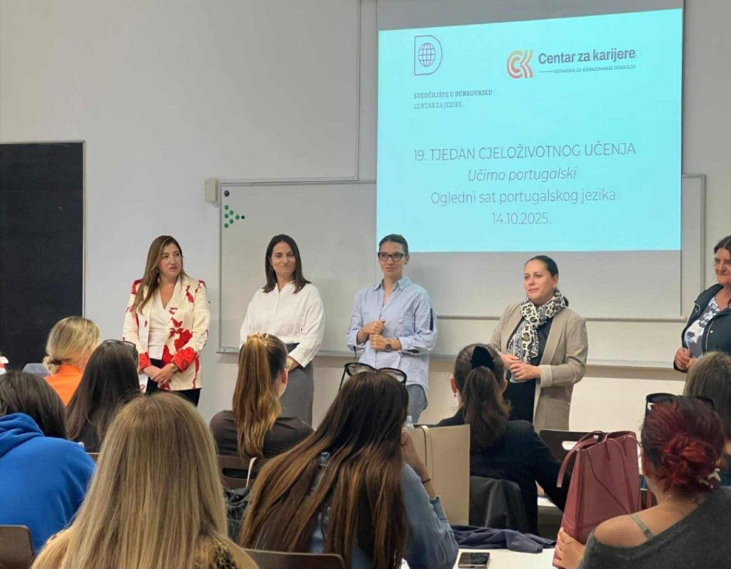 U utorak, 14. listopada 2025., na Sveučilištu u Dubrovniku održan je besplatni ogledni sat portugalskog jezika u organizaciji Centra za jezike Sveučilišta u Dubrovniku i Centra za karijere – ustanove za obrazovanje odraslih. Sat je održan u sklopu 19. Tjedna cjeloživotnog učenja i bio je otvoren za sve zainteresirane građane i studente.