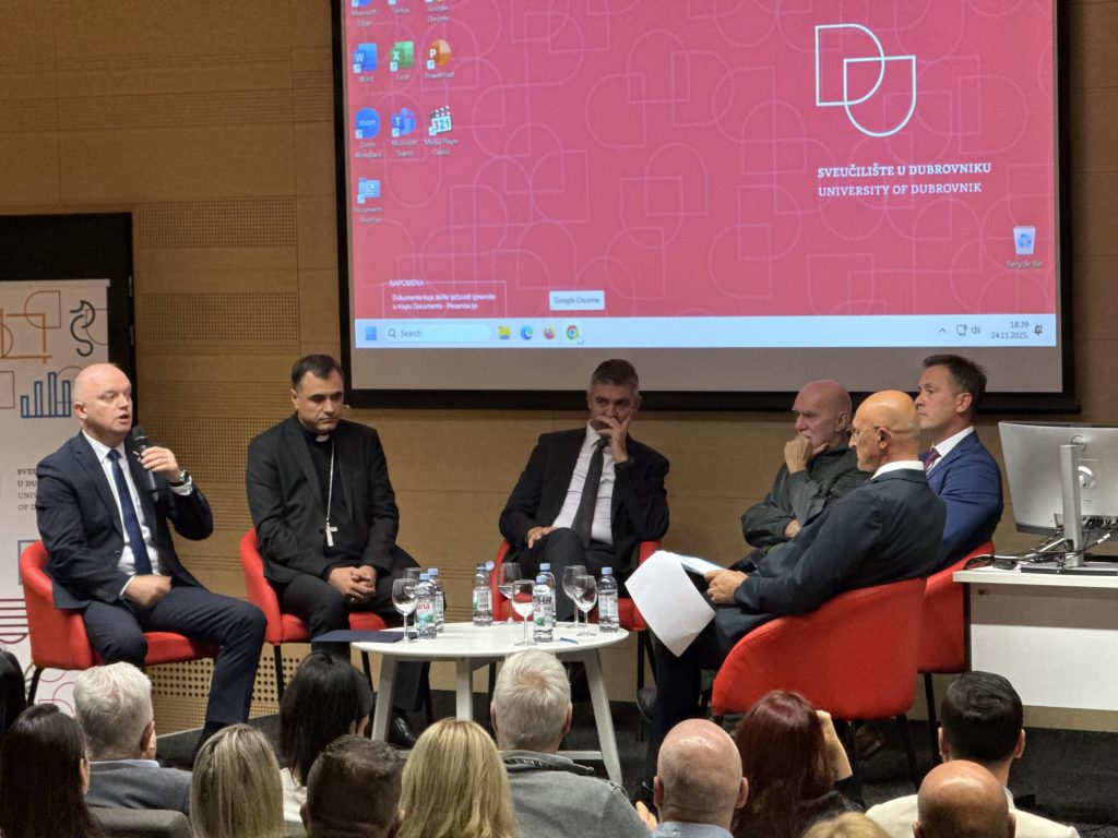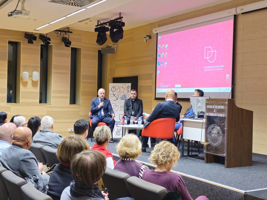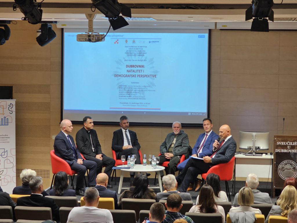 O ovoj su temi govorili ministar demografije i useljeništva Ivan Šipić, dubrovački biskup Roko Glasnović, gradonačelnik Mato Franković, demograf izv. prof. dr. sc. Marin Strmota, savjetnik ministra doc. dr. sc. Stjepan Šterc te povijesni demograf izv. prof. dr. sc. Marinko Marić, koji je ujedno moderirao raspravu.