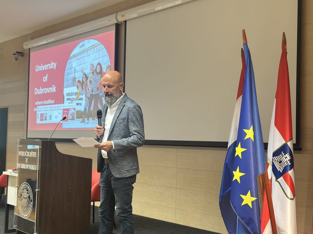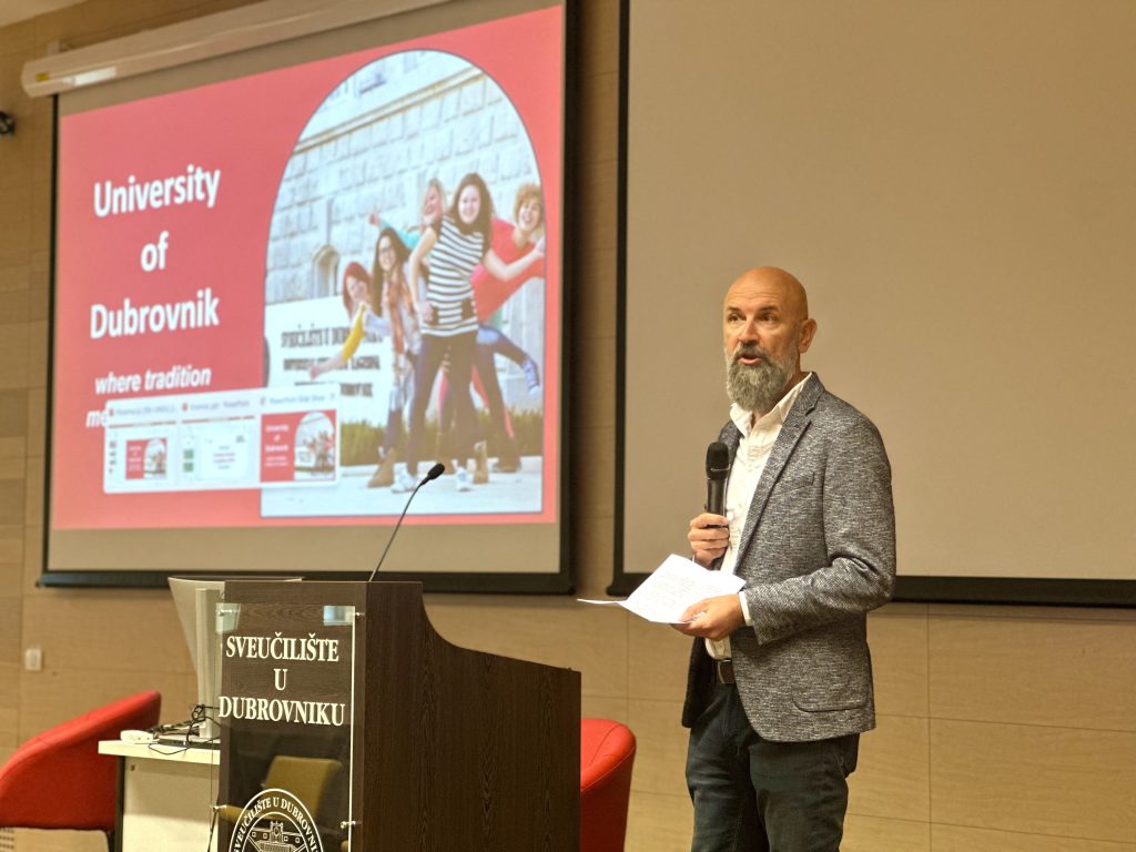 The University of Dubrovnik today hosted the Orientation Day for international students who will be studying in Dubrovnik during the winter semester of the 2025/2026 academic year. The program, organized in cooperation with the University and ESN Dubrovnik, began at the University Campus amphitheatre, where students were welcomed by Vice-Rector for Internationalization, Public Relations and Student Standard, Prof. Mato Brautović, PhD.