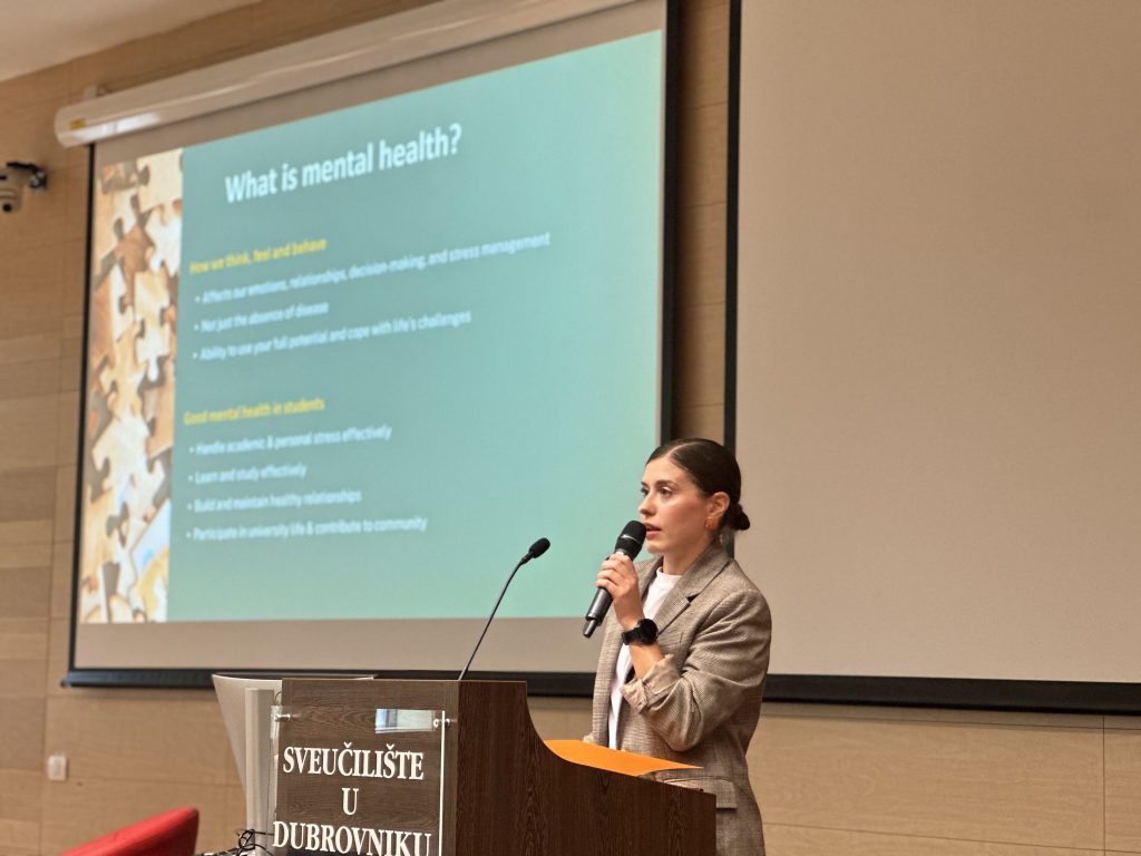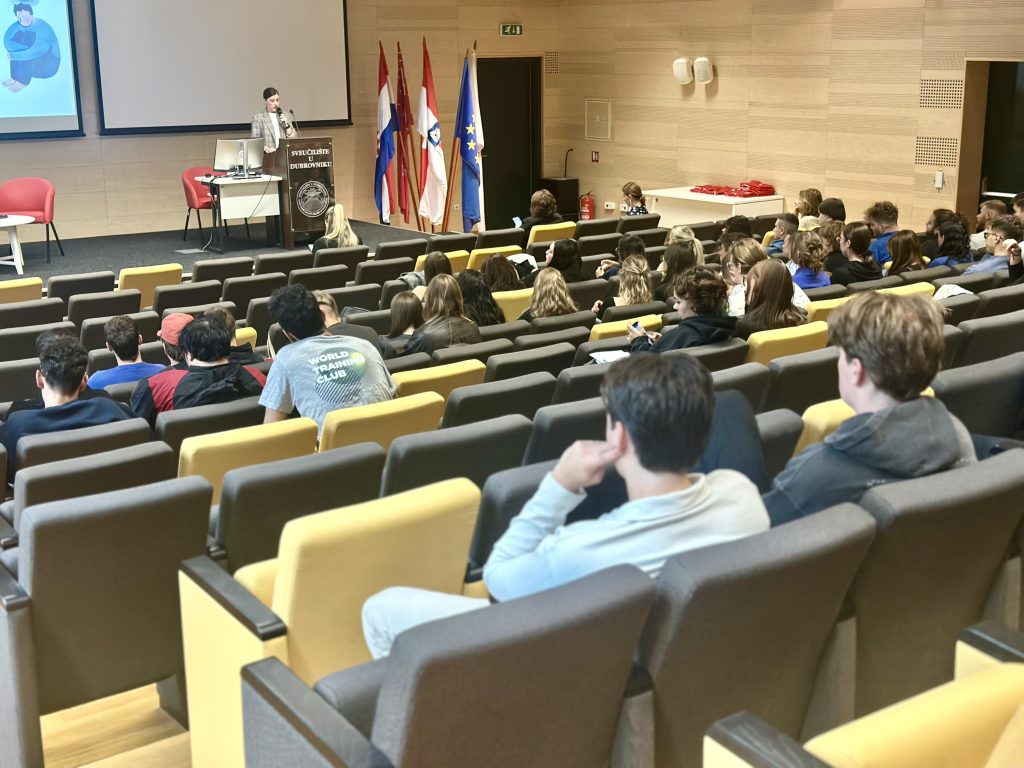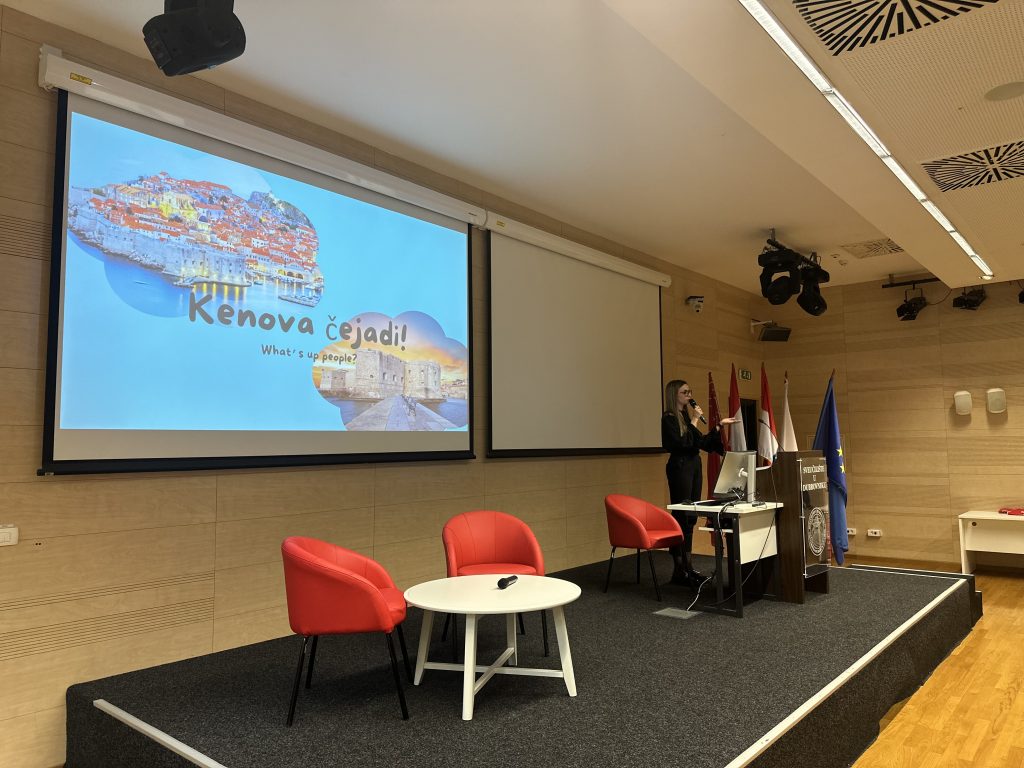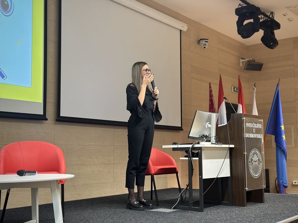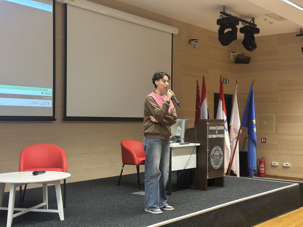 At the very beginning, students were addressed by Nikolina Potrebica, Head of the Office for International Students, followed by Jelena Bupić, psychologist at the newly established Office for Inclusivity and Psychological Support, who emphasized that students can always reach out to her and also gave a short presentation, and Anamarija Lučić, Senior Associate at the Office for International Relations and Mobility, who delivered an engaging presentation with practical advice on how to settle in and “survive” in Dubrovnik. Students were also addressed by Assoc. Prof. Saša Selmanović, PhD, President of the University Sports Association, who introduced the available sports activities and opportunities to get involved in various sports and competitions. Afterwards, the students visited UNIDU Radio and UNIDU Television.