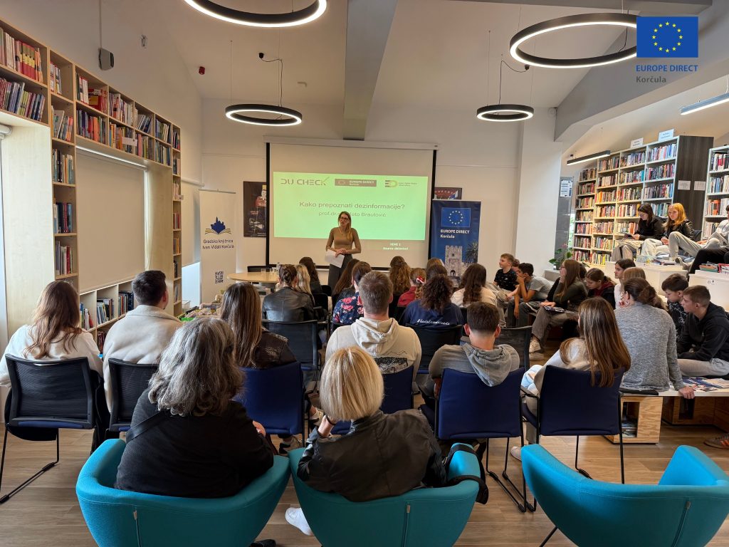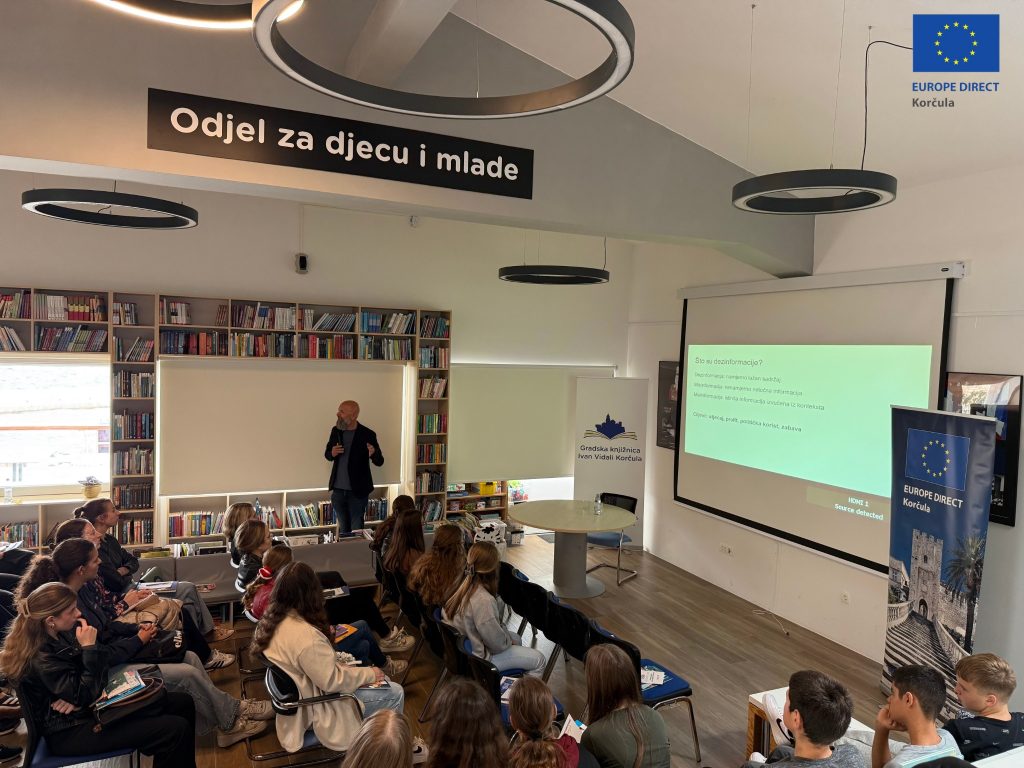 Događaj je organizirao Europe Direct centar Korčula u suradnji s ADMO-om. Radionica je okupila učenike završnih razreda osnovne i srednje škole, koji su kroz praktične primjere učili kako prepoznati nepouzdane izvore, provjeriti informacije i razumjeti utjecaj dezinformacija na javno mišljenje.