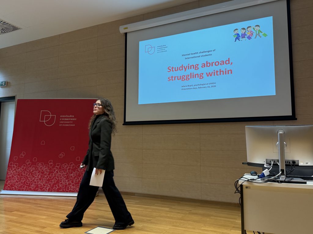 U sklopu radionice studentima se obratila i Jelena Bupić iz Ureda za inkluzivnost i psihološku podršku, predstavivši dostupne oblike savjetodavne i psihološke pomoći te istaknuvši važnost brige o mentalnom zdravlju tijekom studiranja u novoj sredini.