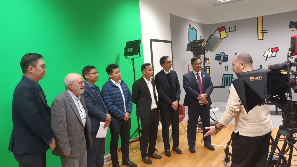 Held at the University’s main campus and the UNIDU TV studio, the training focused on practical aspects of producing high-quality educational video content and delivering hybrid lectures. During four days, participants received hands-on guidance on how to present effectively in front of a camera, how to organise hybrid teaching sessions, and how to operate professional audiovisual equipment purchased through the project, including cameras, lighting, and sound systems.
