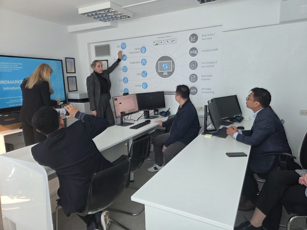 On the final day, participants visited AXON, a behavioural research lab at the Faculty of Economics and Business of the University of Dubrovnik. During the visit, they were introduced to the center’s activities in behavioural science and neuromarketing, as well as the advanced technologies used in research on consumer behaviour and decision-making.